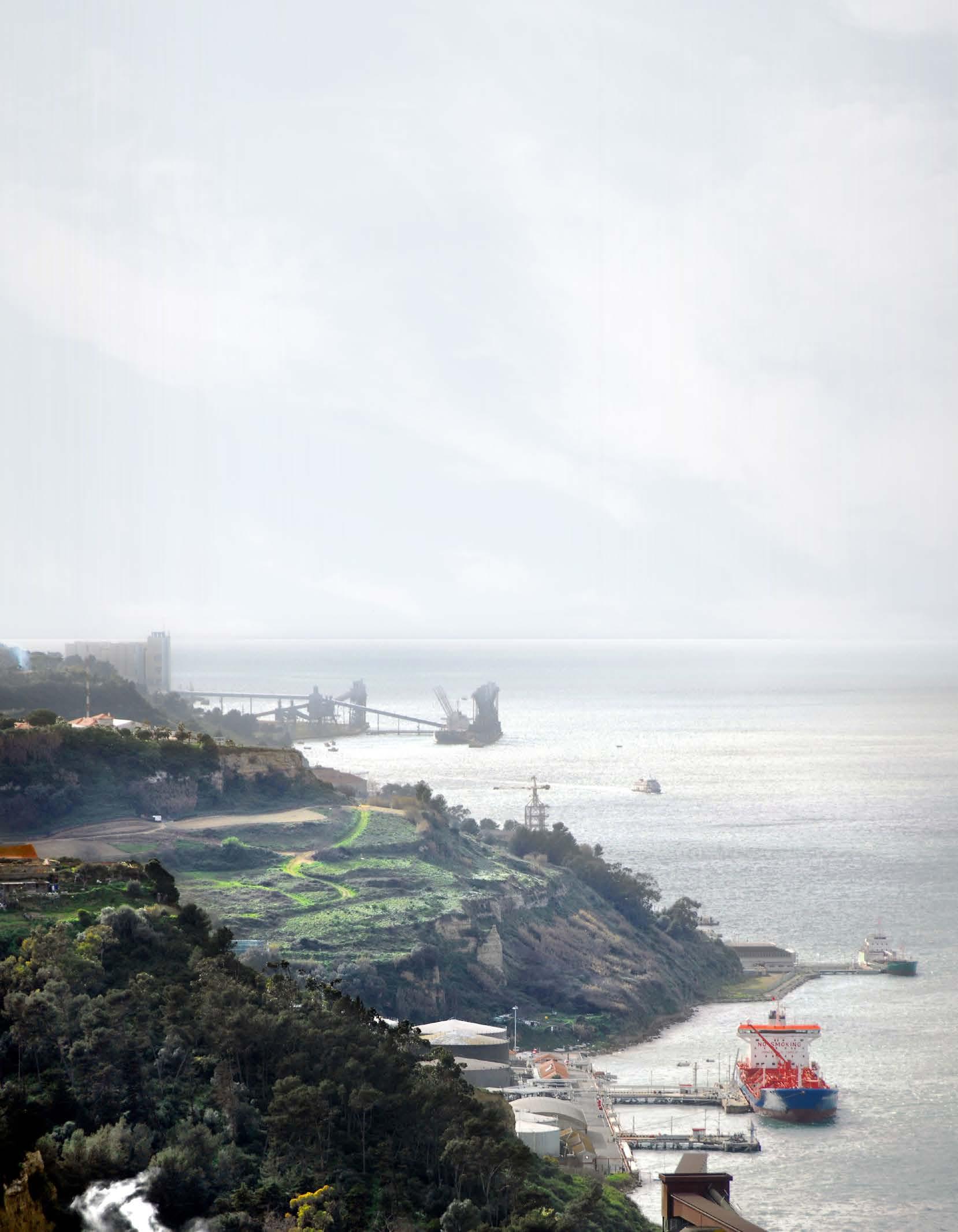 Impianti per lo stoccaggio di gas liquido e cereali lungo il Margem Sul, Almada, Portogallo.
