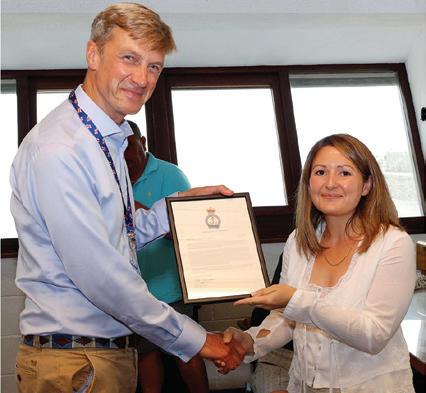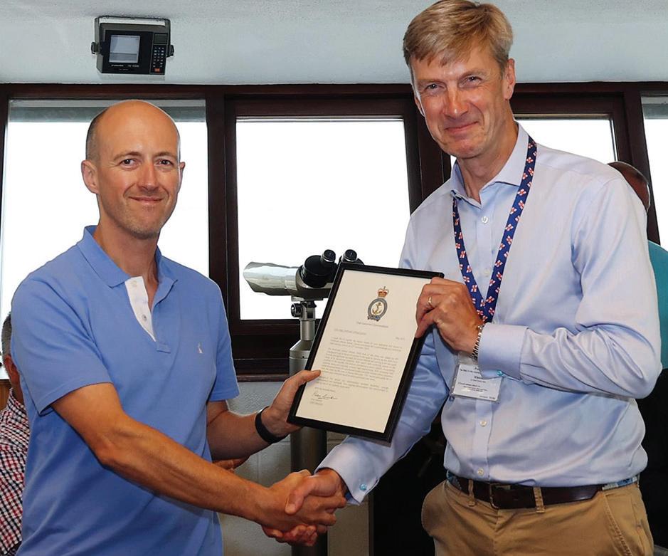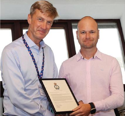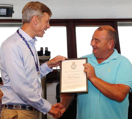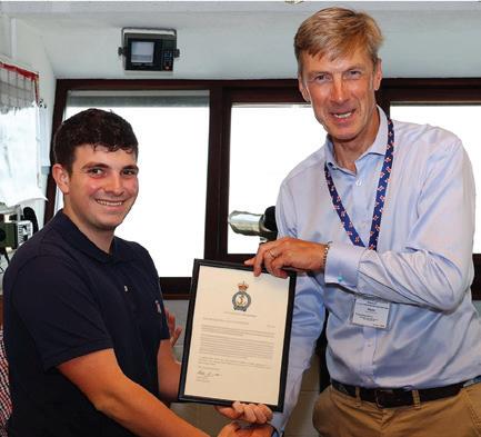 Whilst at the station Peter presented Chief Executive’s Commendations to four crew members; Chris Page (helm), Amy Bridge, Nathan Evans and Ieuan Walmsley. This was for a launch, which took place last year in which the Atlantic 85 launched in force 8 winds with significant sea swell and extreme waves. The inshore lifeboat was running at the very upper limits of its operational capability, as part of a multi-agency incident. These commendations were presented to Chris Page (helm) for leadership and command decisions and the entire crew for their courage, perseverance and teamwork. An excellence in volunteering award was also presented to Tim Morgan for his many years of dedicated volunteering to the RNLI and in recognition of the countless hours he has given this year in the role of launch authority.