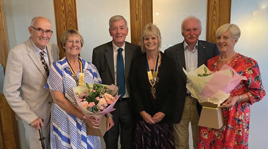 The photograph shows captain Gordon handing over the cheque to the representative from Ty Hafan Ms Georgina Burke supported by vice captain Tom Watson and President John Adsley.