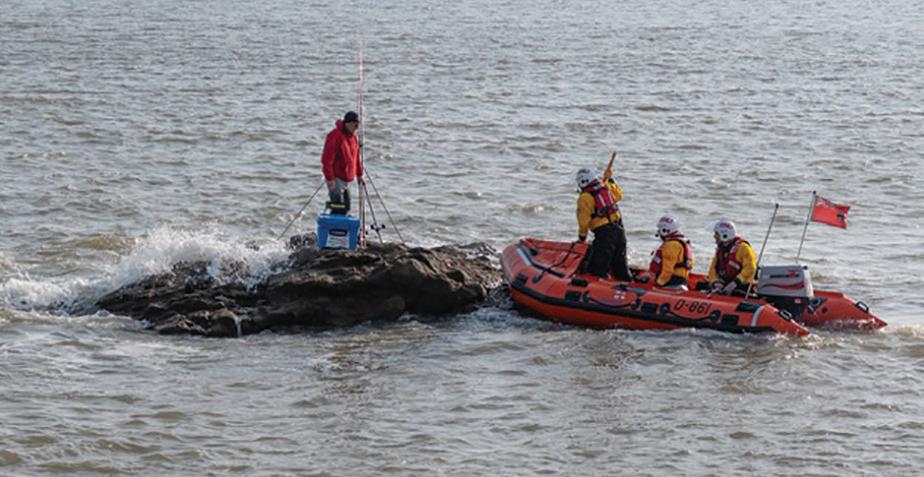 Despite getting a little wet whilst on the rock the fisherman was in good spirits and was able to return home from the lifeboat station otherwise unharmed.