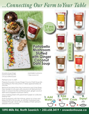 Portobello Portobello Mushroom Mushroom Stuffed Stuffed with with Ginger Ginger Coconut Coconut Dahl Dahl Soup Soup Snowdon House Ginger Coconut Dahl Soup Mix 1/4 cup nutritional yeast