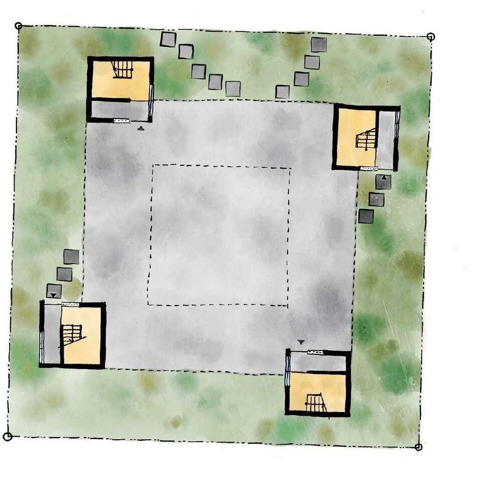 A 0A’ 1 2 3(m) N 1階平面図兼配置図 2階平面図 影庭 ▲前面道路 04.各階平面図 3,000 1,000 2,000 3,000 3,000 6,000 1,500 1,500 1,000 2,000