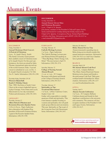 For more information on alumni events, contact Alumni Relations at (206) 296-6127 or visit www.seattleu.edu/alumni/.