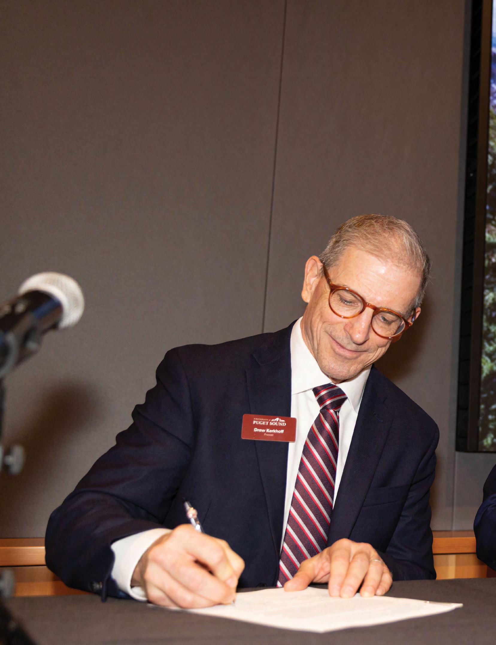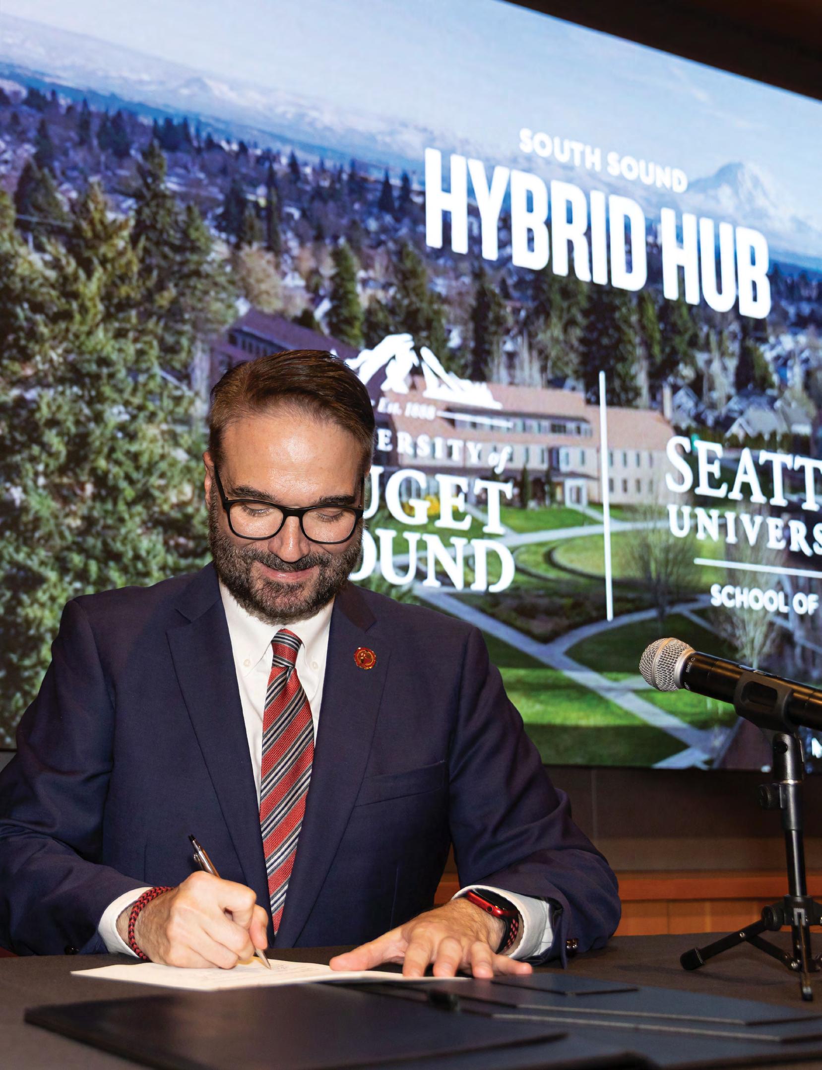 Seattle University School of Law celebrated its partnership with the University of Puget Sound as the newest South Sound Hybrid Hub location in September. The partnership will provide significant in-person and virtual instruction, programming, advising, networking, employment, and experiential learning opportunities and resources for Puget Sound graduate students through Seattle U Law’s pathbreaking Flex JD hybrid-online degree program. Dean Anthony E. Varona (right) is pictured signing a memorandum of understanding at the event with University of Puget Sound Provost Andrew Kerkhoff.