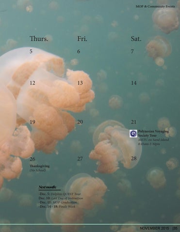 Next month: -Dec. 5: Dolphin QUEST Tour Dec. 10: Last Day of Instruction -Dec. 11: MOP Graduation -Dec. 14 - 18: Finals Week