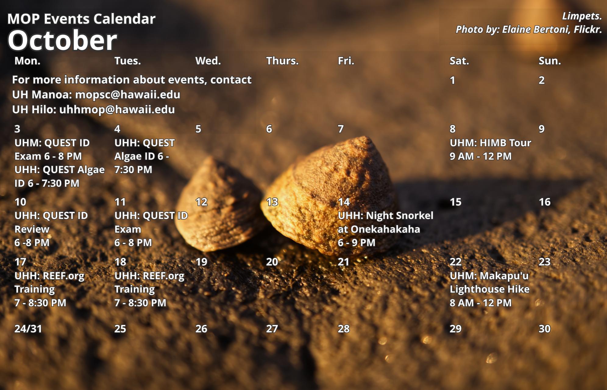 2 | Seawords VolumeXXXVII,Number 8 Alohaand Welcometo theOctober issueof Seawords! We'restartingoff thismonth'sissuewiththethirdarticleinour seriesonindigenousscienceandscientists.Our UHHiloMOPLiason, ChloeMolou,interviewsmarinesciencestudent,JacobWessling,on page4! Fromthesmall tothelarge,explorehow aquaticorganisms inhabit their environments.Readabout thestateof themicrobiomein theWaimeaValleyon theNorthShoreof O?ahu (page8). Explore how scientists aretracking shark's and ray's vertical movements on page12. Learnabout marinedebrismonitoringandtheuseof bioindicators toassesstheocean'shealth(page26).Catchupon theUN'srecent OceanConference,wheremarinesciencemeetsinternational policy,on page24! Finally,meet our creatureof themonth,the?opihi (Hawaiian Limpet) onpage20. Spookyseason isofficiallyupon us! Asanaddedbonus,pick up someHalloweencostumeinspirationstraight fromtheseaonpage16! What wouldyouliketoseemoreof inSeawords?Sendinyour thoughts,andfollow usonTwitter andInstagramat @mopseawords! AbbieJeremiah,SeawordsEditor