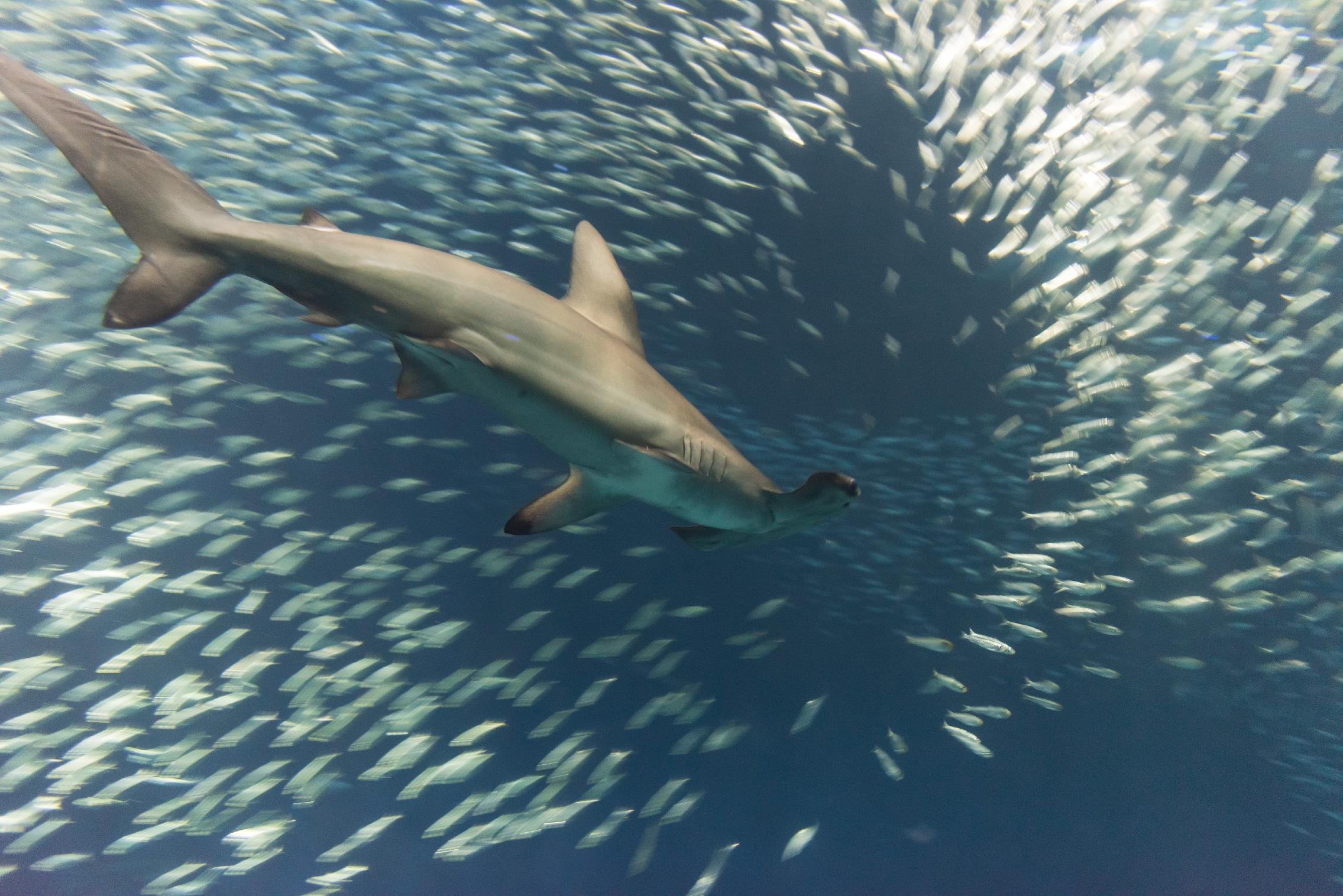 1,200 metersandwhale sharksasdeepas1,800 meters.At least athirdof the989 biotelemetry tags on38 elasmobranchspecies taggedwent tocolddeep watersfor their food. Thephoticzoneof the oceanisthetop200 meters of theoceanwherelight can penetrate.Biotelemetry taggingresearchhasfound 26 of the38 speciesspent 95%of their timeinthetop 250 metersof theocean.The top200 metersiswhere humansandelasmobranchs interact most oftenthrough fishing,where elasmobranchsbecome bycatch. Understandingthe ocean?svertical dimension will beimportant increating management strategiesfor marineprotectedareasto ensurethesurvival of sharks andrays. Sardine Wormhole.Photo by:ByronChin,Flickr. OCTOBER 2022 | 15