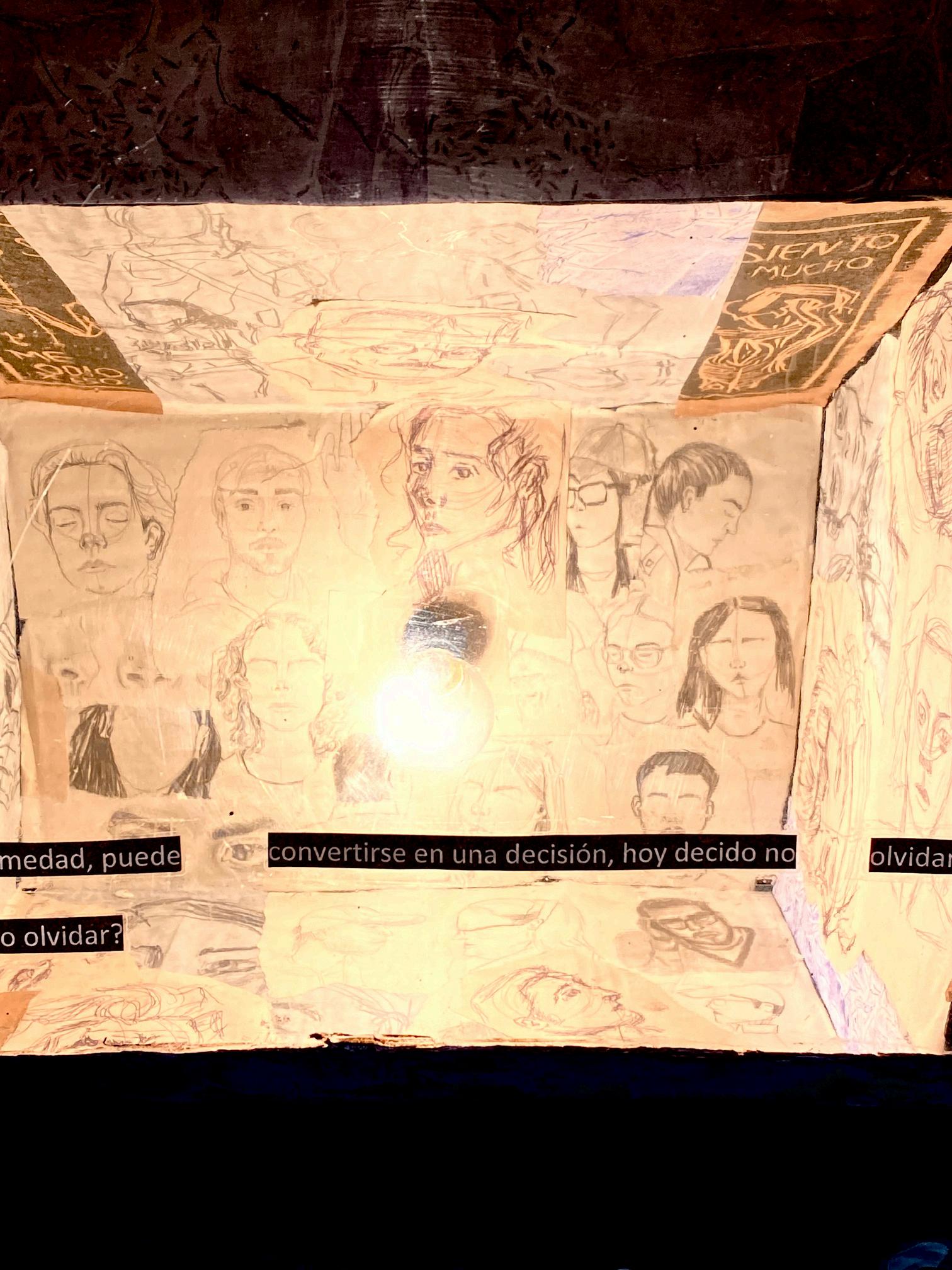 El sentimiento de recordar aquella sensación de inocencia y pureza dentro de la capacidad imaginativa de un niño me ha llevado a evocar recuerdos y características importantes de aquella etapa, una niñez única, especial y tan original. En este caso, una niñez propia, llena de recuerdos y sensaciones que se siguen presentando a través de vivencias y experiencias propias, marcadas y reflejadas en el vivir de mi dia a dia. Este interés nace en evocar y transmitir aquellos sentimientos y sensaciones a través de cuadros vivos donde se reflejan características únicas como el misterio, la ficción y la imaginación. los materiales los he ido manifestado a medida de que la experimentación cae sobre la mesa, el grafito como bocetaje, el personaje como interacción y la fotografía como registro. Estos transmiten la adaptabilidad que nace del espacio y de la armonía visual entre la obra y la escenografía llegando así a darle importancia a la participación desde una mirada externa y volátil.