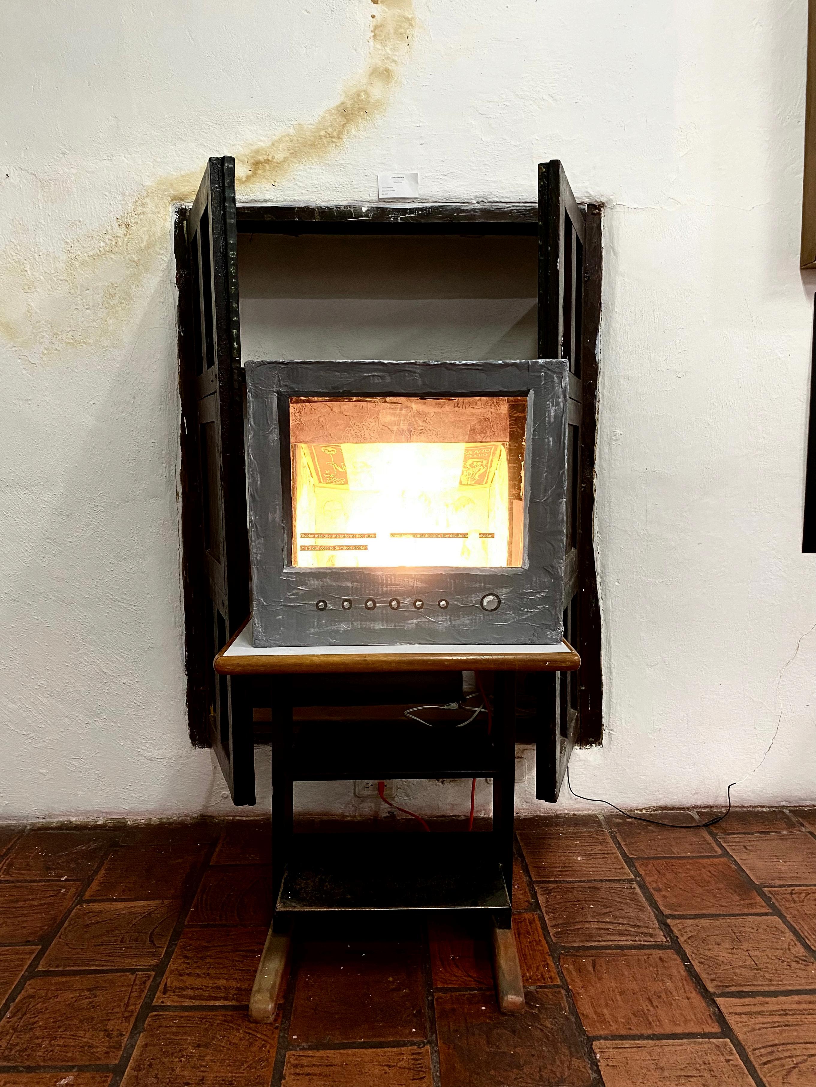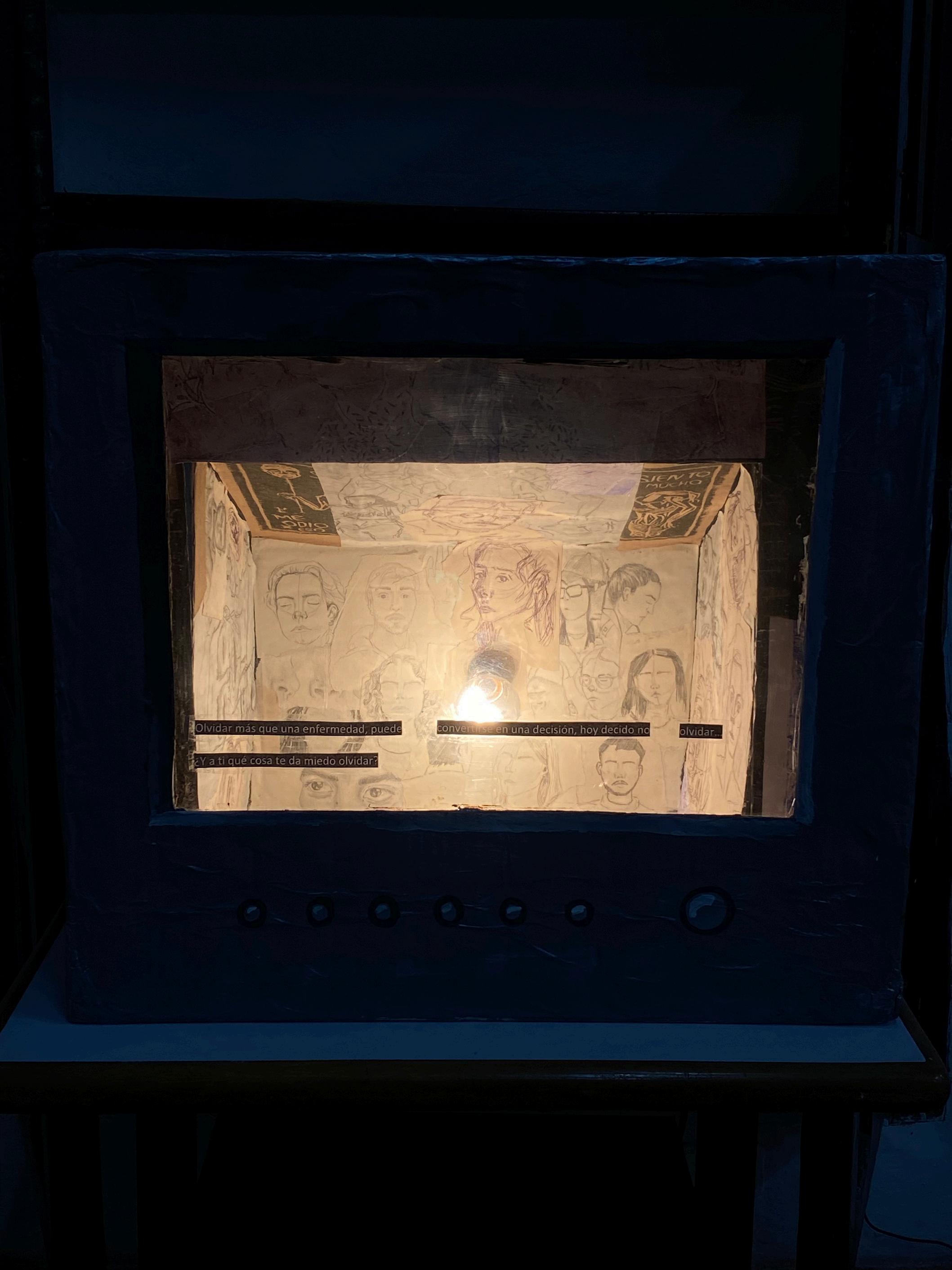 En esta obra llamada Closed Caption este electrónico no recibe señales inalámbricas sino que se traslada a una linea más lejana donde su principal canal es la reproducción de recuerdos y memorias cálidas que funcionan como columna base de la contención de vivencias naturales a través del tiempo.