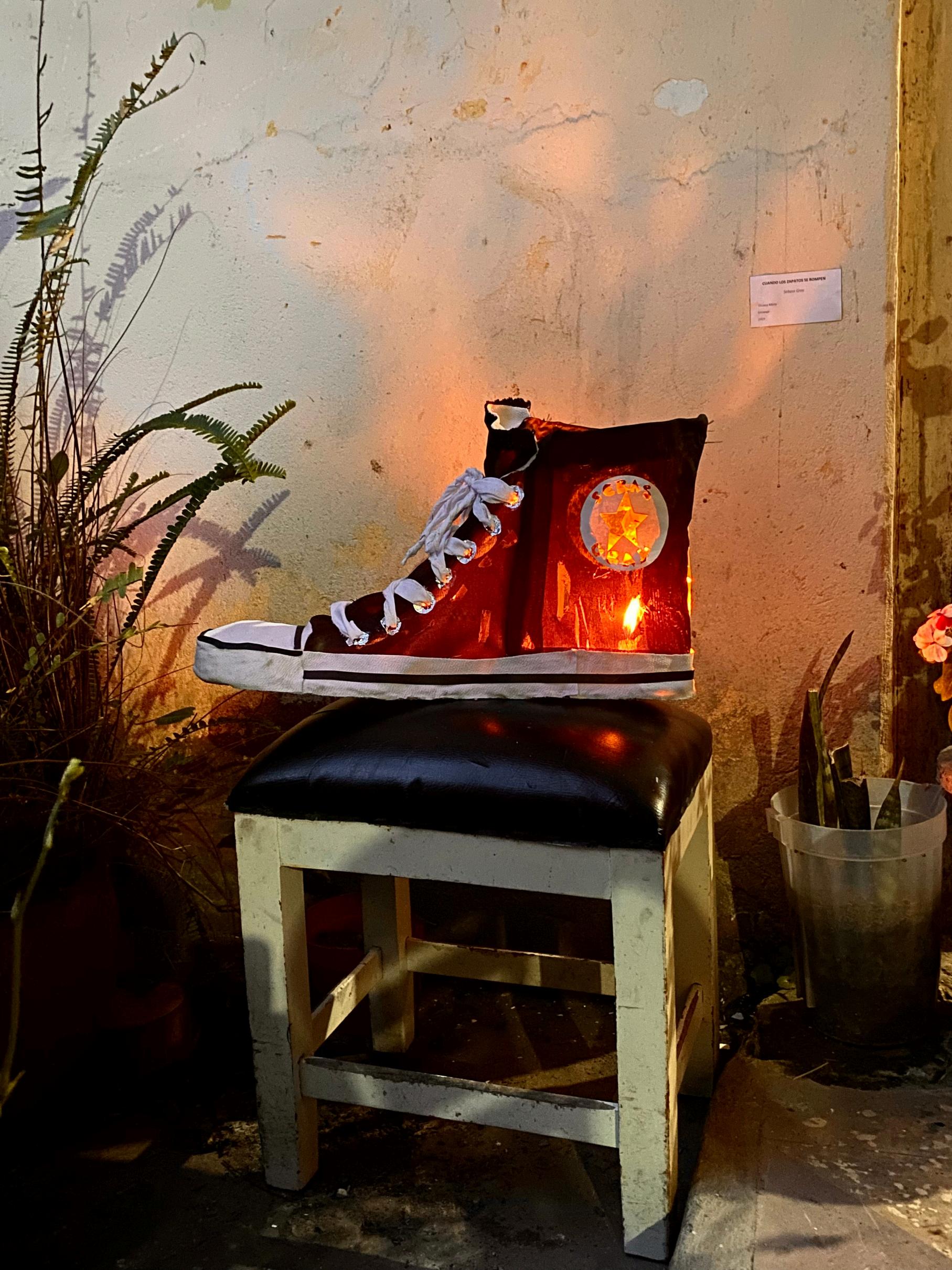 Hasta que los zapatos se rompan, es una obra que me ha llevado como artista a explorar una identidad extraviada en los extensos pasos del tiempo. Encontrar mi propia identidad como ser único e individual se volvió una tarea ardua entre tanta contaminación humana. En ella se generan narrativas especiales como la utilización constante de prendas de vestir, principalmente los zapatos y su descomposición hasta no quedar nada más que el profundo vacio entre el soy y el quién soy.