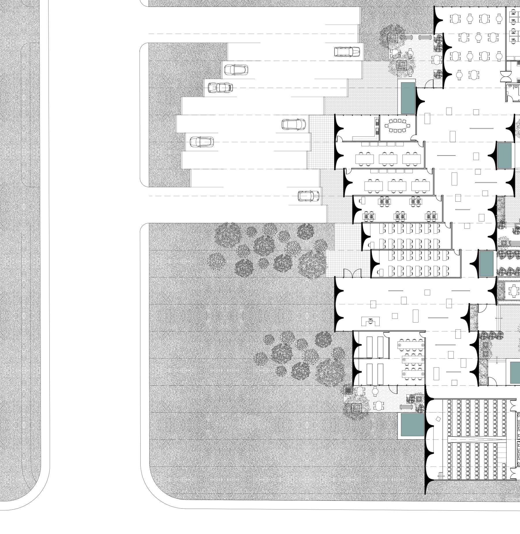 Given the dire situation at the border, a radical re-imagining of this boundary is required. The Green Border Act proposes a “Special Ecological Zone” (SEZ) at the border designated for the housing of climate refugees and the rehabilitation of farmland. Housing is intermixed with farm plots that are granted to incoming refugees to allow them to settle the area and to apply their expertise as farmers. The fields are irrigated through desalination plants on the American side of the border that draw and treat saltwater from the port of Brownsville. After treatment, the freshwater is distributed through a series of pipes and water towers. The plants are powered by arrays of solar energy on the Mexican side of the border, which dictate the logistical capacity of the desalination infrastructure. As part of the Green Border Act: