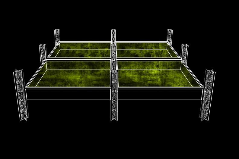 A research center, algae farm, park, and spectacle of lights. This project addresses the ecological impact of chemical enriched fertilizer used on farms near the Mississippi River. Water runoff from farms pollutes the river with nitrogen and phosphorous, stimulating algae growth in the Gulf of Mexico. Although initially beneficial, the algae rapidly deplete oxygen from the water after dying. This creates a hypoxic zone that kills marine life within it. The proposal involves creating a research site that inverts this cycle.