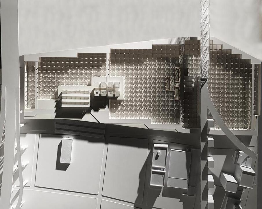 The initial concepts for the design of the theater come from volumetric studies that are in turn, abstractions of private and public spaces within famous building plans. Through multiple iterations and abstractions, the final volumetric study is composed of a faceted exterior surface and a series of fins that emanate from the center point of the volume. These fins surround the center point creating a cylindrical void that pierces through the center of the volume.