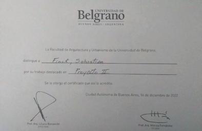 El Proyecto fue reconocido por la Universidad de Belgrano en el año 2022.