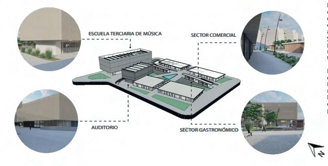 Proyecto que consiste en integrar un Colegio Terciario de Música con un recorrido gastronomico, comercial y cultural en el Barrio de Colegiales.