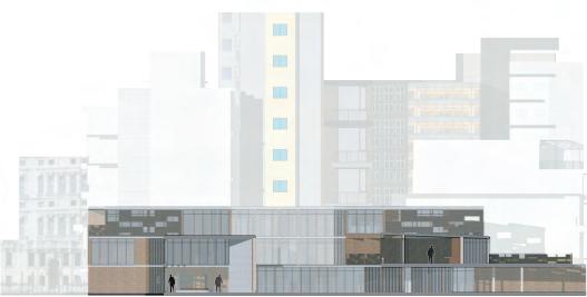 Este Proyecto que busca atraer a un nuevo público al Barrio de Belgrano. Aprovechando el amplio terreno reforzamos la idea de espacios abiertos y la integración del verde en medio de la ciudad.