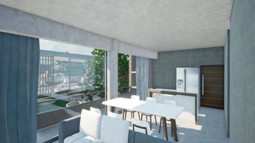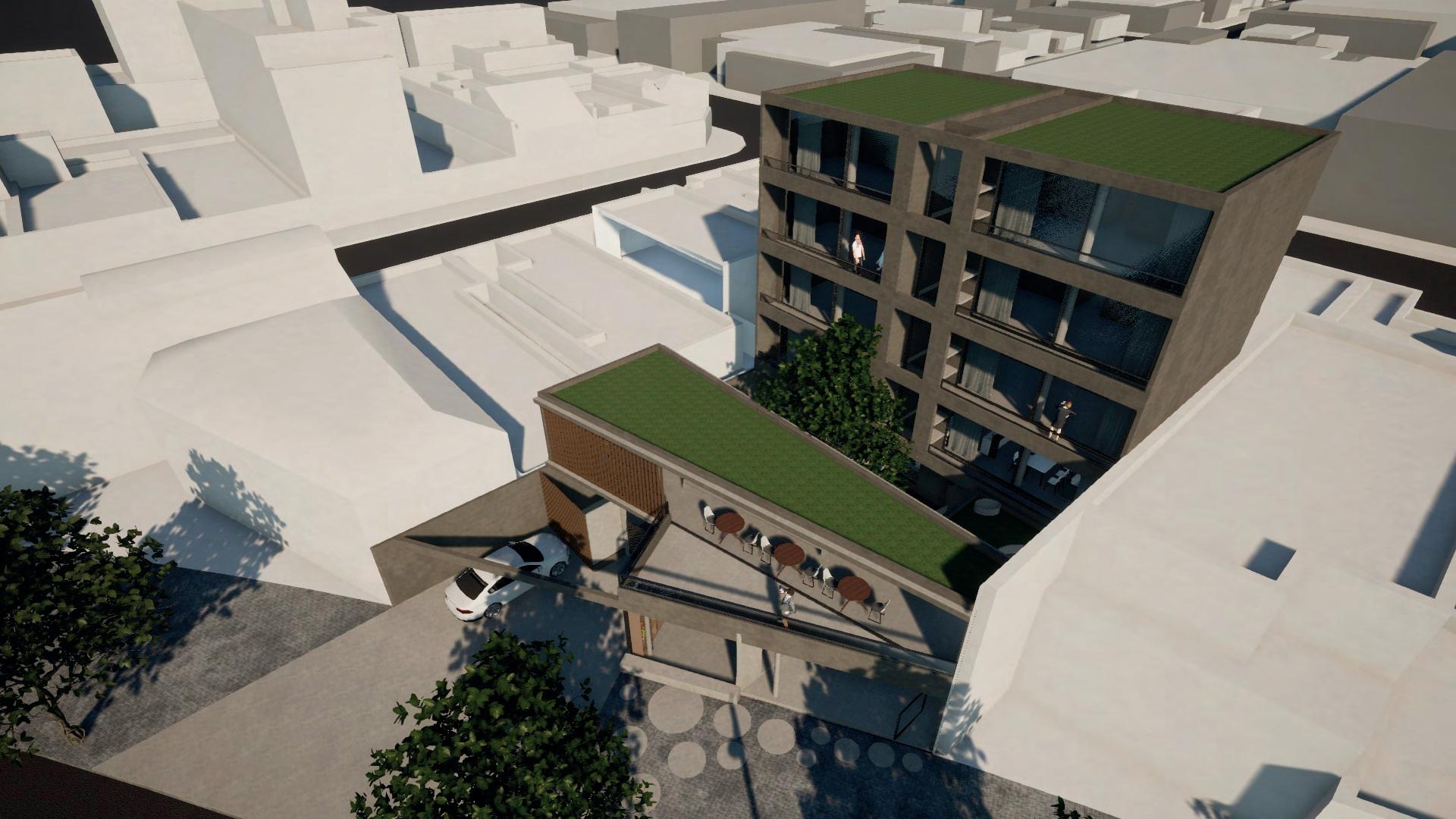 Tomando de base la edificación realizada, en el contexto real, se incoroporó una edificación en los lotes vecinos de la misma manzana, y se unificaron realizando modificaciones morfológicas y de solado.