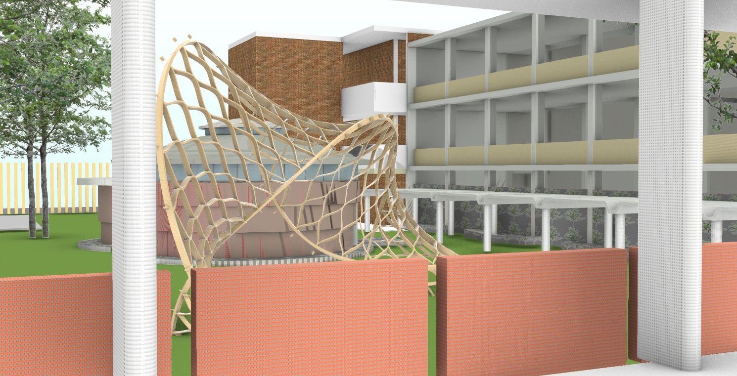 La estructura en forma de seta, en un inicio parece monumental, sin embargo esa misma altura hace que no quite visuales, por lo que es un acierto en