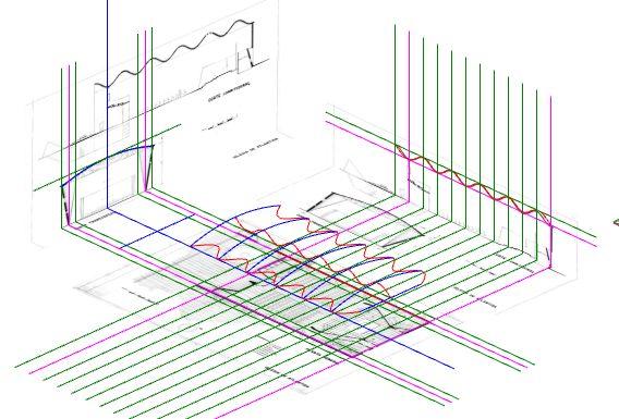En base a planos y cortes dibujamos las líneas principales y ejes los cuales conforman los muros y cobertura
