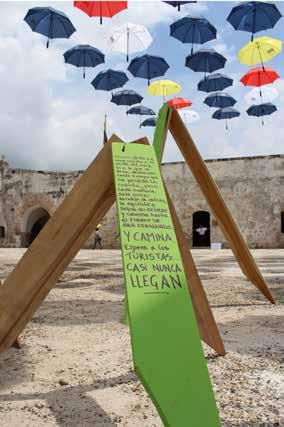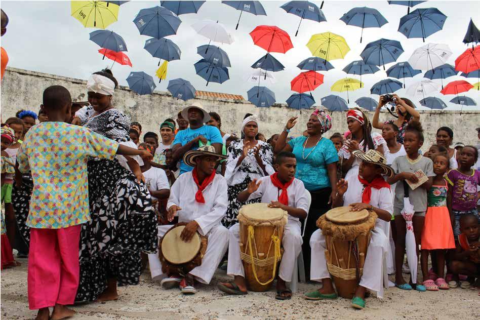 La propuesta del escenario para el festival consistió en una cubierta de sombrillas que brindó a los espectadores del evento resguardo de los rayos del sol. Los habitantes de la región brindaron su apoyo para la construcción del mobiliario, la cubierta y la adecuación del Fuerte de San Fernando. Parte del mobiliario fue brindado por la comunidad en una actividad donde los muebles eran reparados y pintados, se utilizaban para el evento y se devolvían a las familias. La apropiación del lugar se fomentó a lo largo de las dos semanas que permanecimos en el corregimiento con actividades de adecuación y preservación del pueblo. La actividad del festival se organizó en diferentes etapas finalizando con una reunión con la comunidad y representantes de las entidades públicas de Cartagena, charla sobre patrimonio, exposición del corto cinematográfico de los niños y una presentación de bailes típicos de la región. De esta forma concluyo nuestra labor en el territorio.