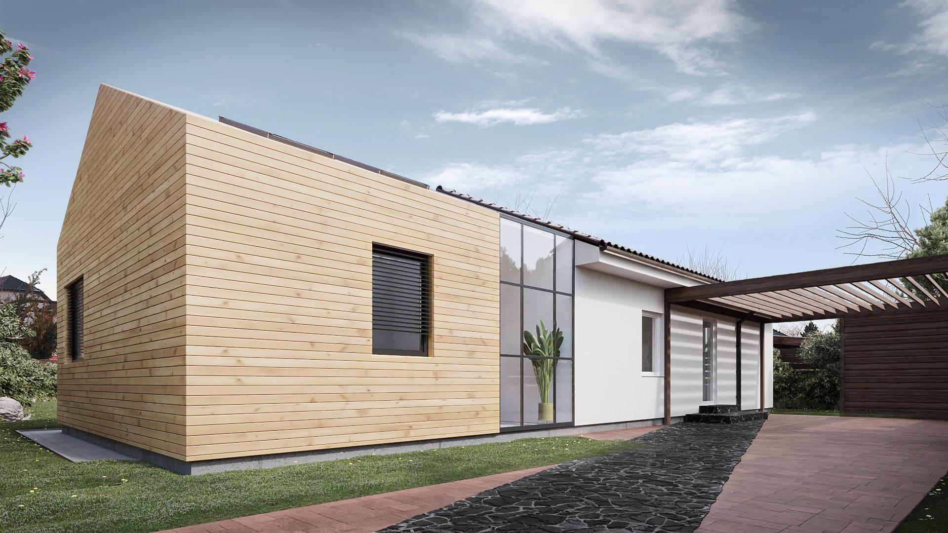 stávající rodinný dům klasický dům se sedlovou střechou dřevěná konstrukce společenská část vstup