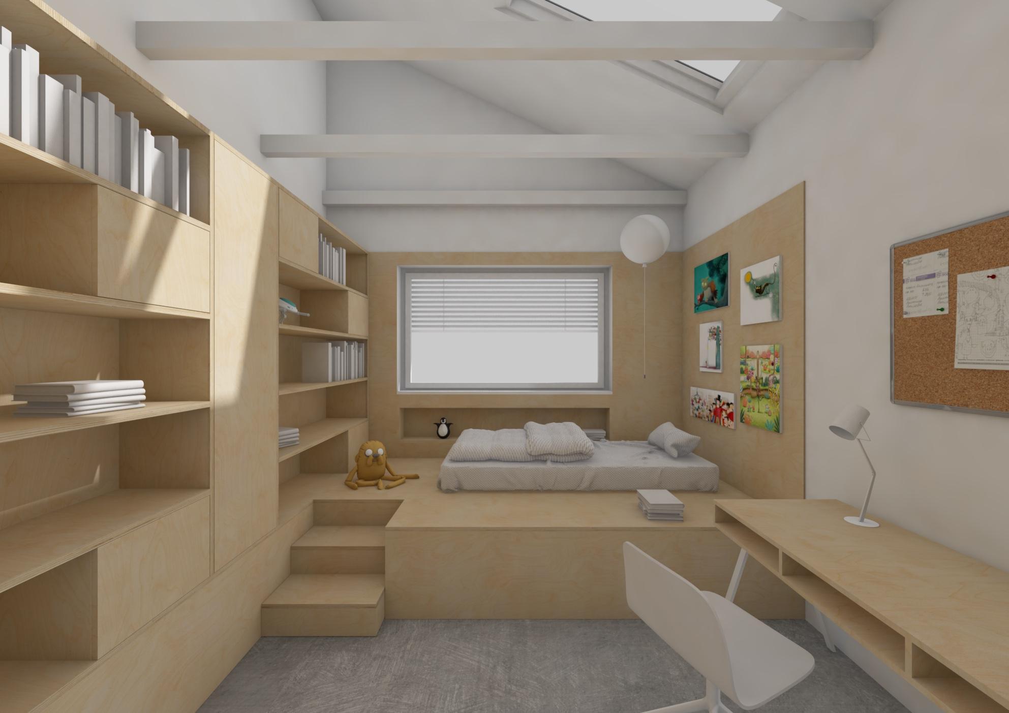 + detské pokoje přístupné z jedné chodby + oddělená pracovna přístupná z obyváku