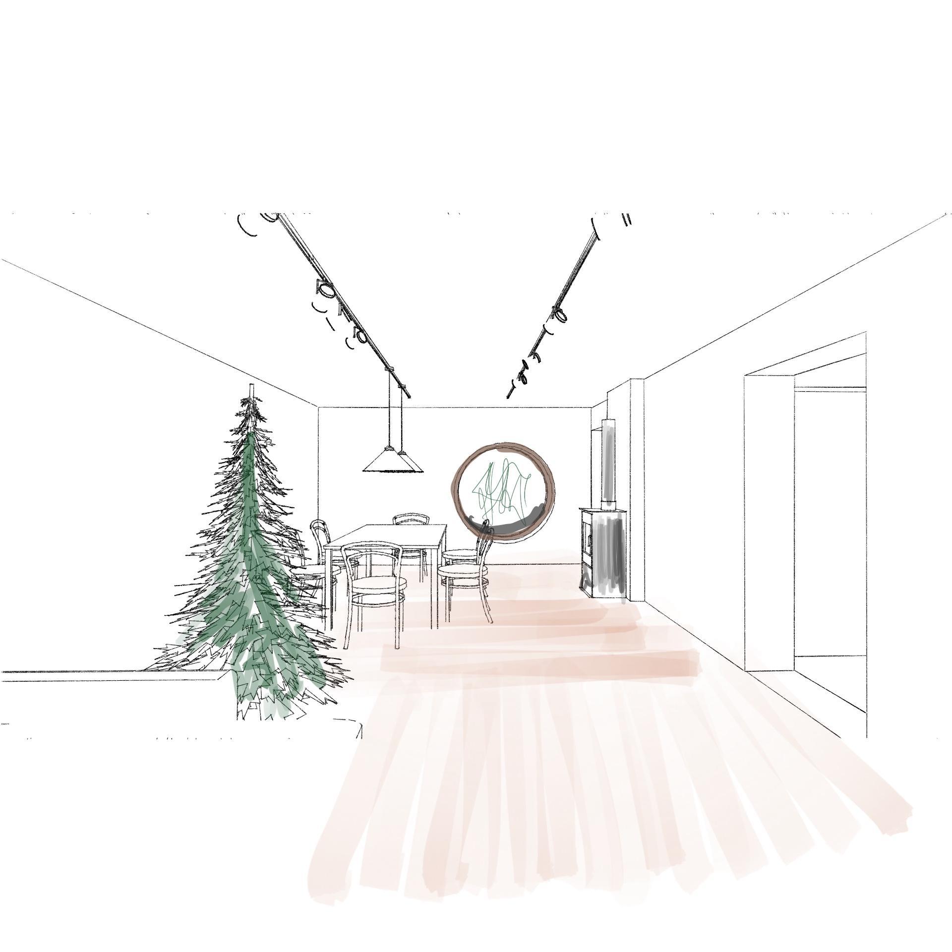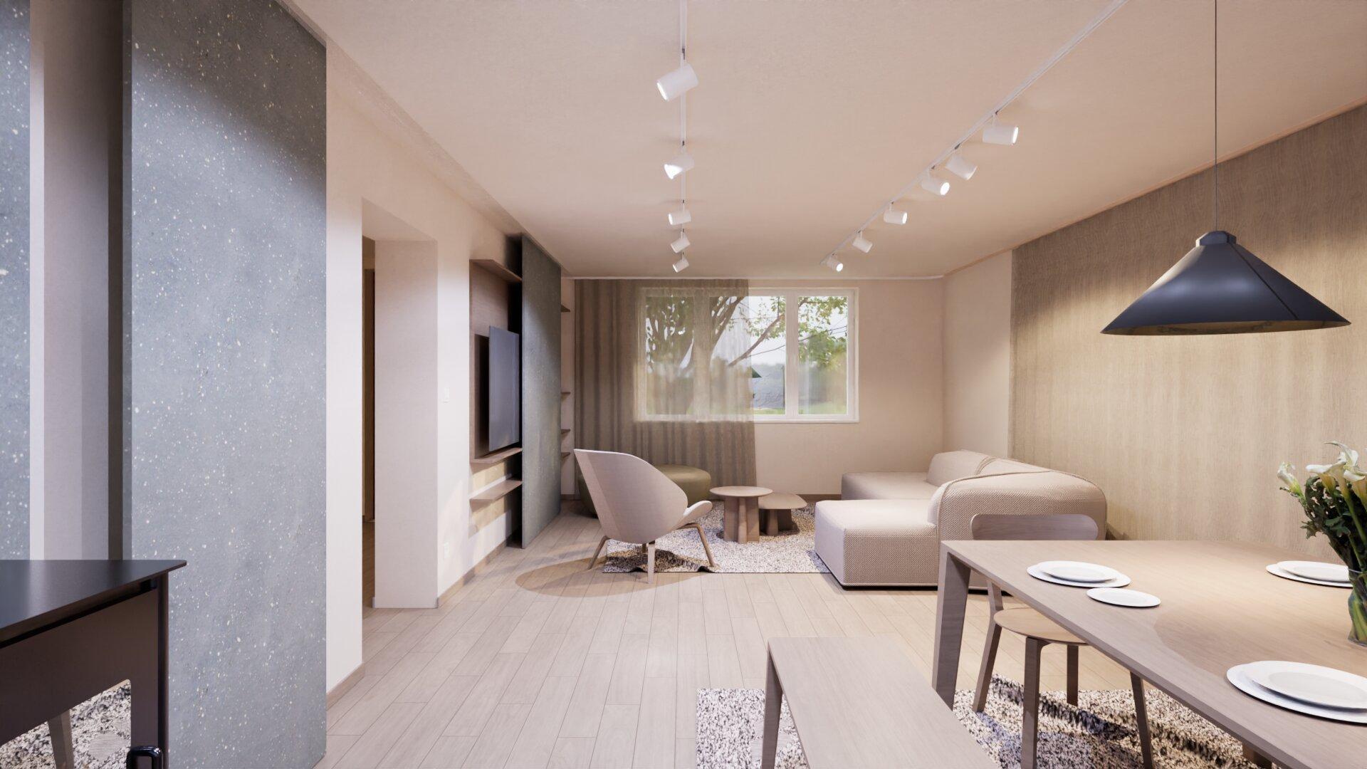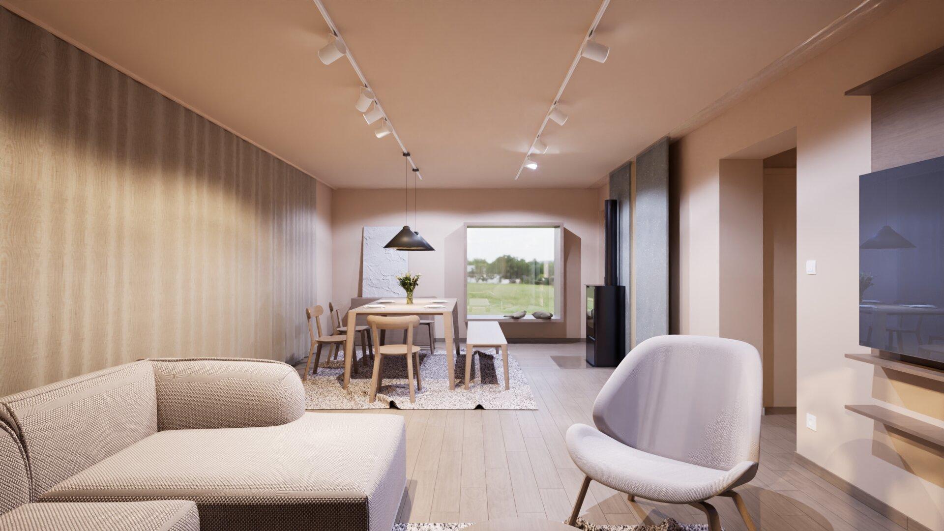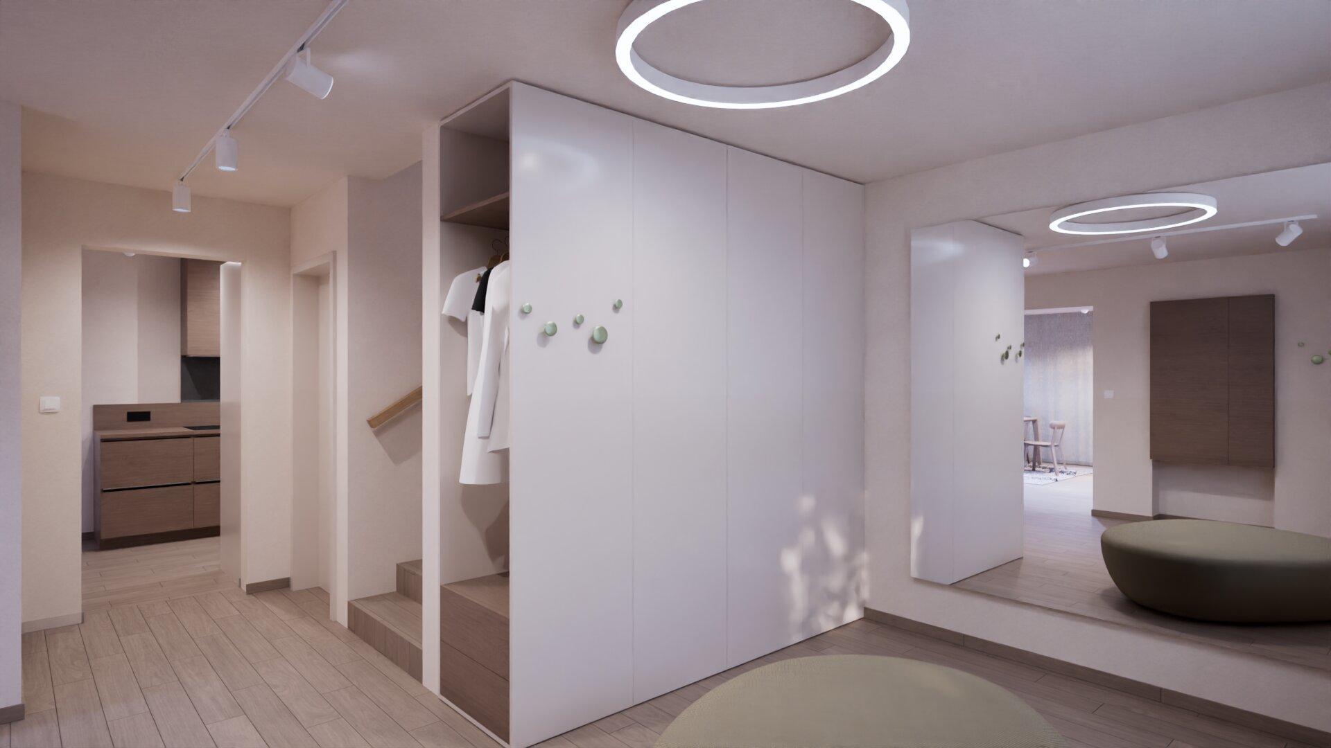 Cieľom návrhu je pomocou jednoduchý materiálov a prvkov vytvoriť príjemný, teplý a moderný priestor - nový domov pre rodinu.