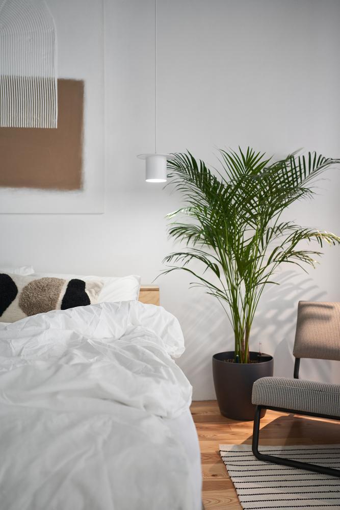 voľne stojaci čalunený nočný stolík vysiaca nočná lampa s vypínačom