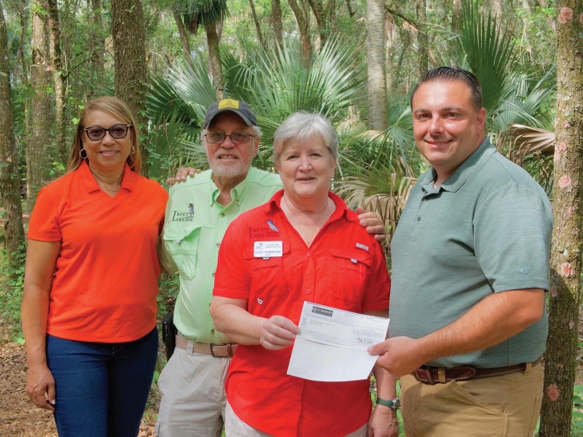 The Trout Lake Nature Center (TLNC) received $22,000 in dedicated SECO Energy Foundation grant funds to help replace a portion of its boardwalk that traverses the 230-acre Eustis preserve. Thousands of students and adults visit the Center and stroll the boardwalk and nature trails each year.
