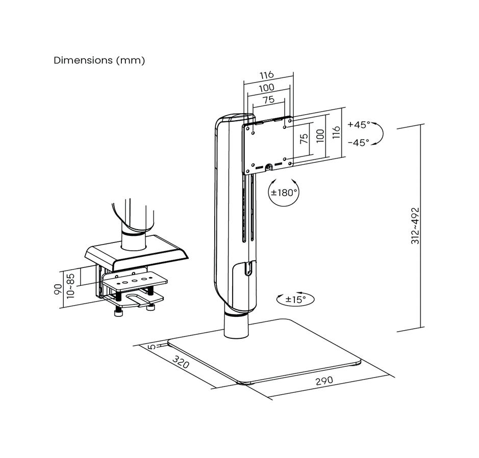- VESA Standard: 200x200,400x200, 300x300,400x400,600x400