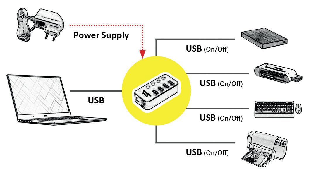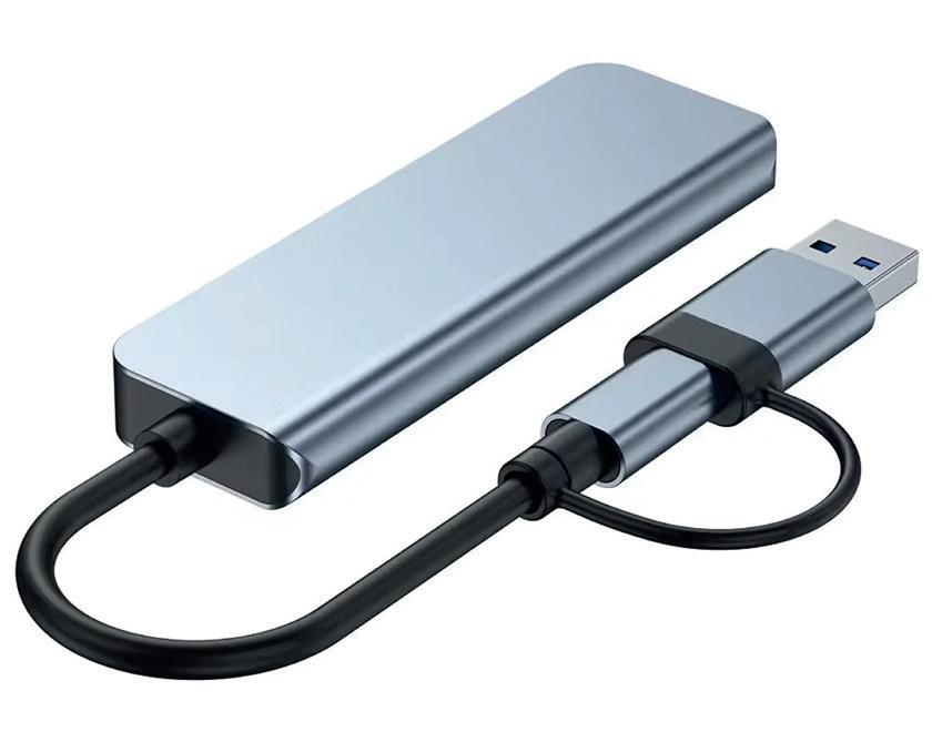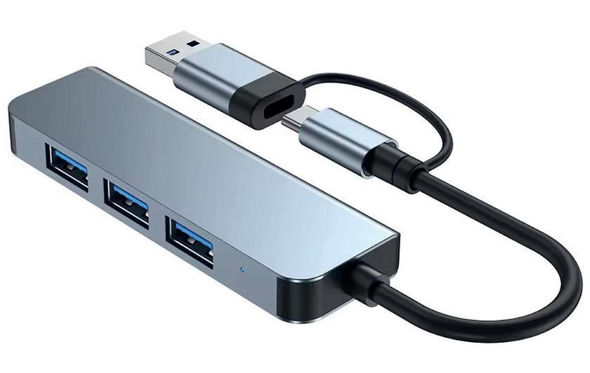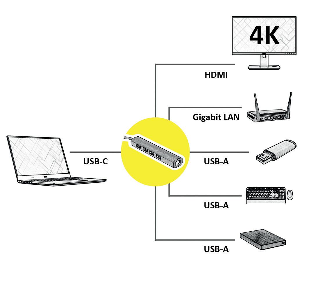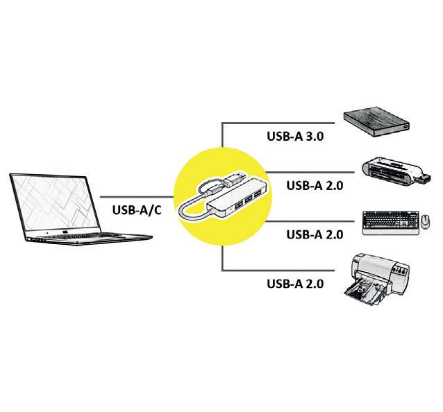 With this metal USB Hub, up to four USB devices can be connected to the USB port of a PC, regardless if the PC provides a USB Type A or a USB Type C port.