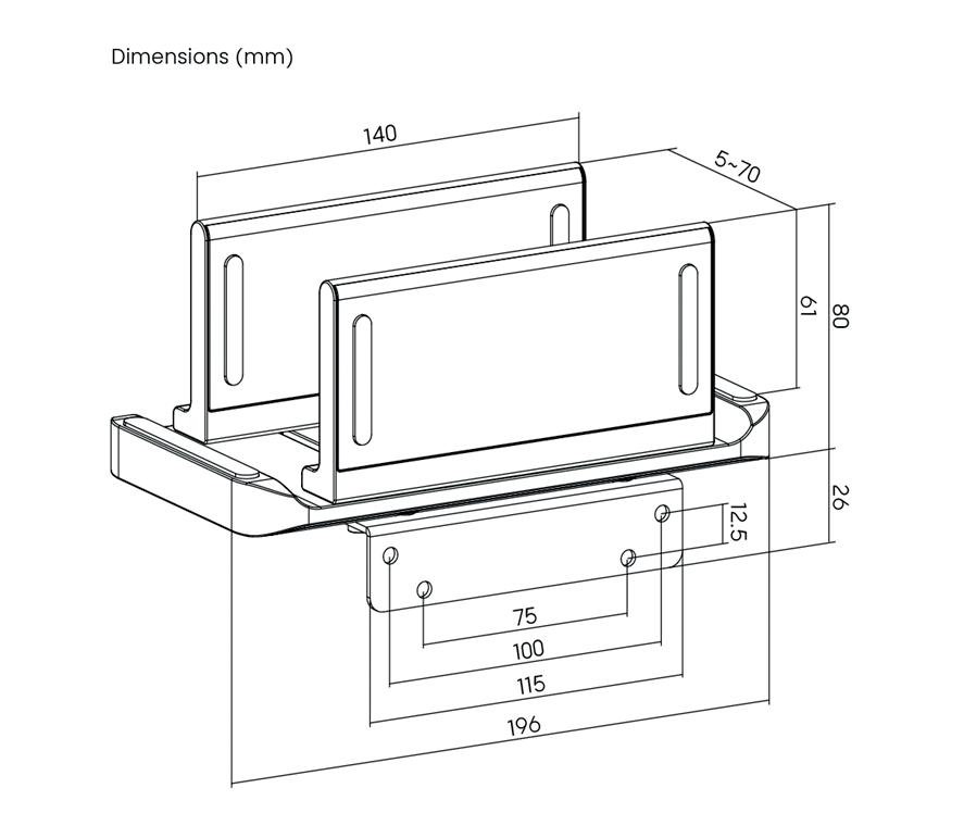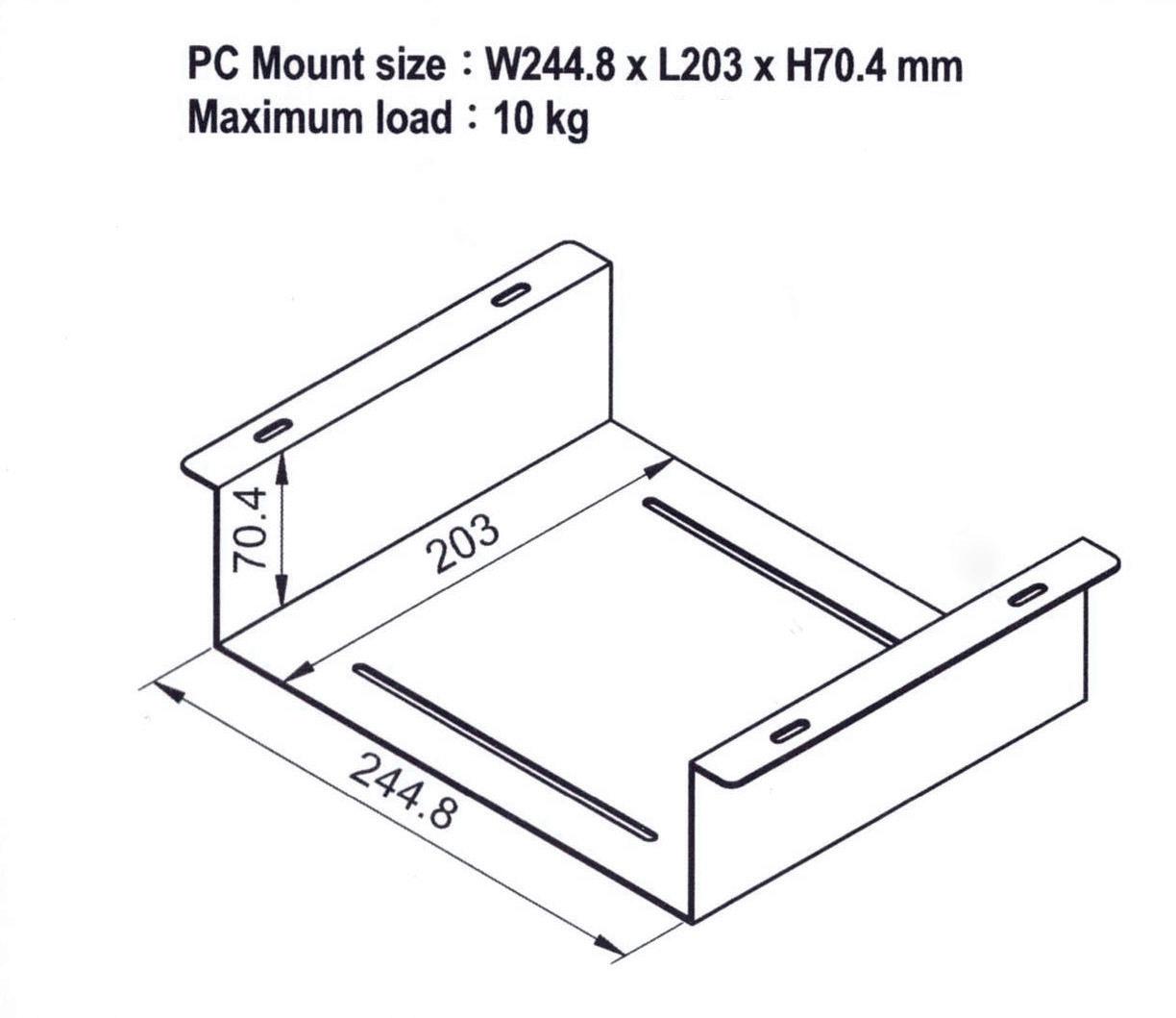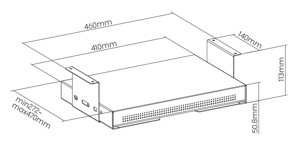 • Contents: Mounting shelf, mounting screws, angle brackets