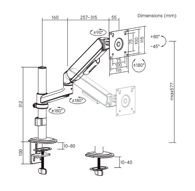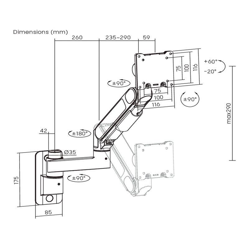 • This mount extends out 510mm from wall and allows TVs to turn 60° left or right