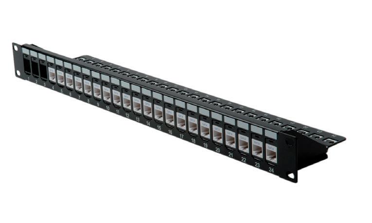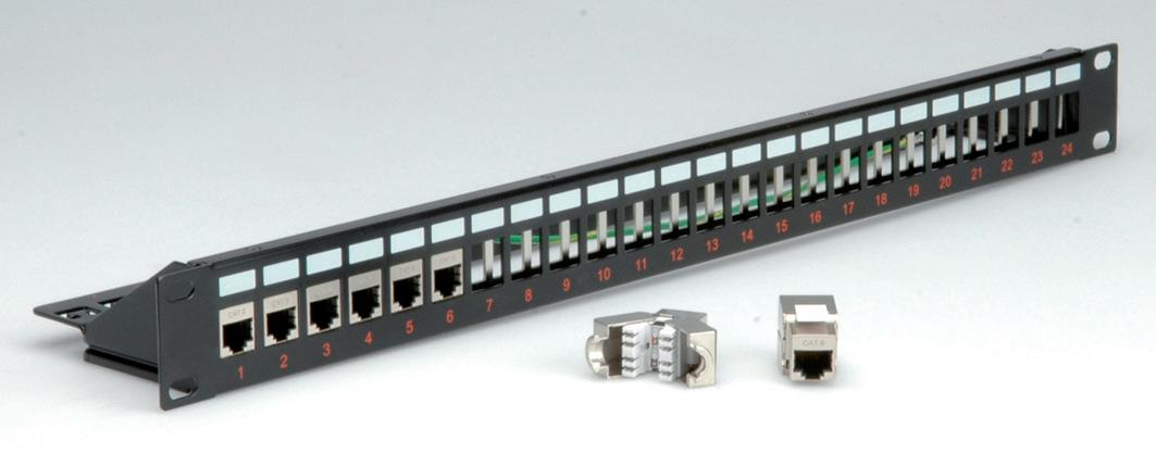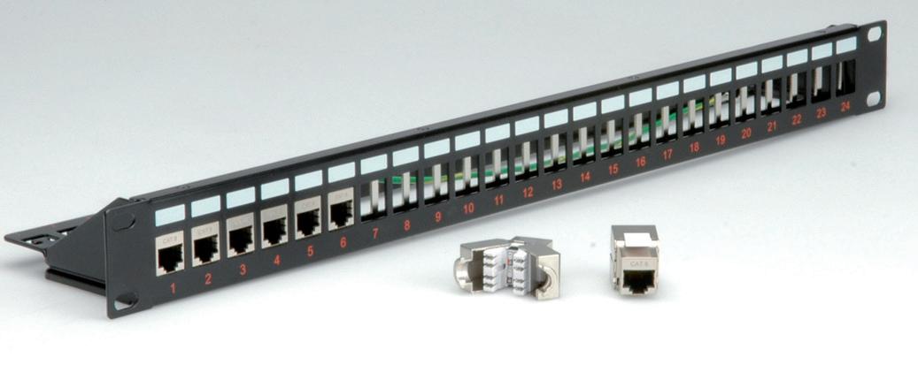• The Keystone modules can be „latched“ into a 19‘‘ module support rack, which is optionally available in black (26.11.0360) or light gray (26.11.0359).