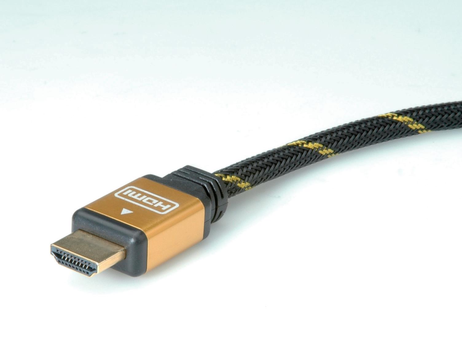 ROLINE GOLD - Top quality without any compromises!Cables in ROLINE GOLD quality come with high quality shielding and gilded contacts for contact safety even at high plug-in cycles. The plugs are gold coated to enhance their contact durability. Nylon-reinforced outer material in golden/black provides a better stability and gives the cable a stunning look.