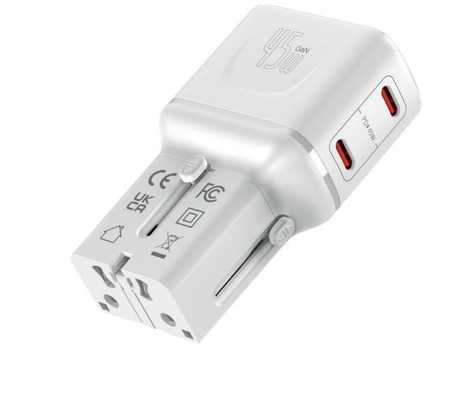2-port USB pocket traveller charger, 2x Type C with maximum 45W for the power supply (smartphones, tablets) of several devices simultaneously. Suitable for travel to the EU/UK/US.
