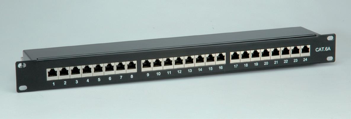 ROLINE Cat.6 S/FTP Cable, Solid Wire, AWG23: 21.15.0890 (100 m), 21.15.0891 (300 m); ROLINE Cat.6 Surface Mount Wall Jack, shielded: 25.16.8392 (white); ROLINE Cat.6 19“ Patch Panel, 24 Ports, shielded: 26.11.0351 (light grey), 26.11.0361 (black); ROLINE Cat.6 S/FTP Patch Cord, grey, 5 m: 21.51.0835.