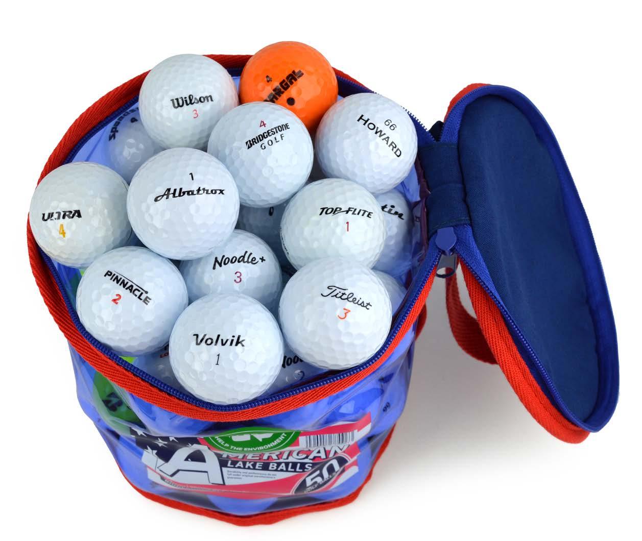 Our 18 ball bad contains a mix of quality lake balls. Contents may vary but may include: Titleist, Pinnacle, Wilson, Maxfli, Nike, Spalding, Callaway, Top Flite, Bridgestone etc. Second Chance closely inspects and sorts each ball after it has been through our unique reconditioning process. Golf balls come in a reusable, zip-top carry bag.