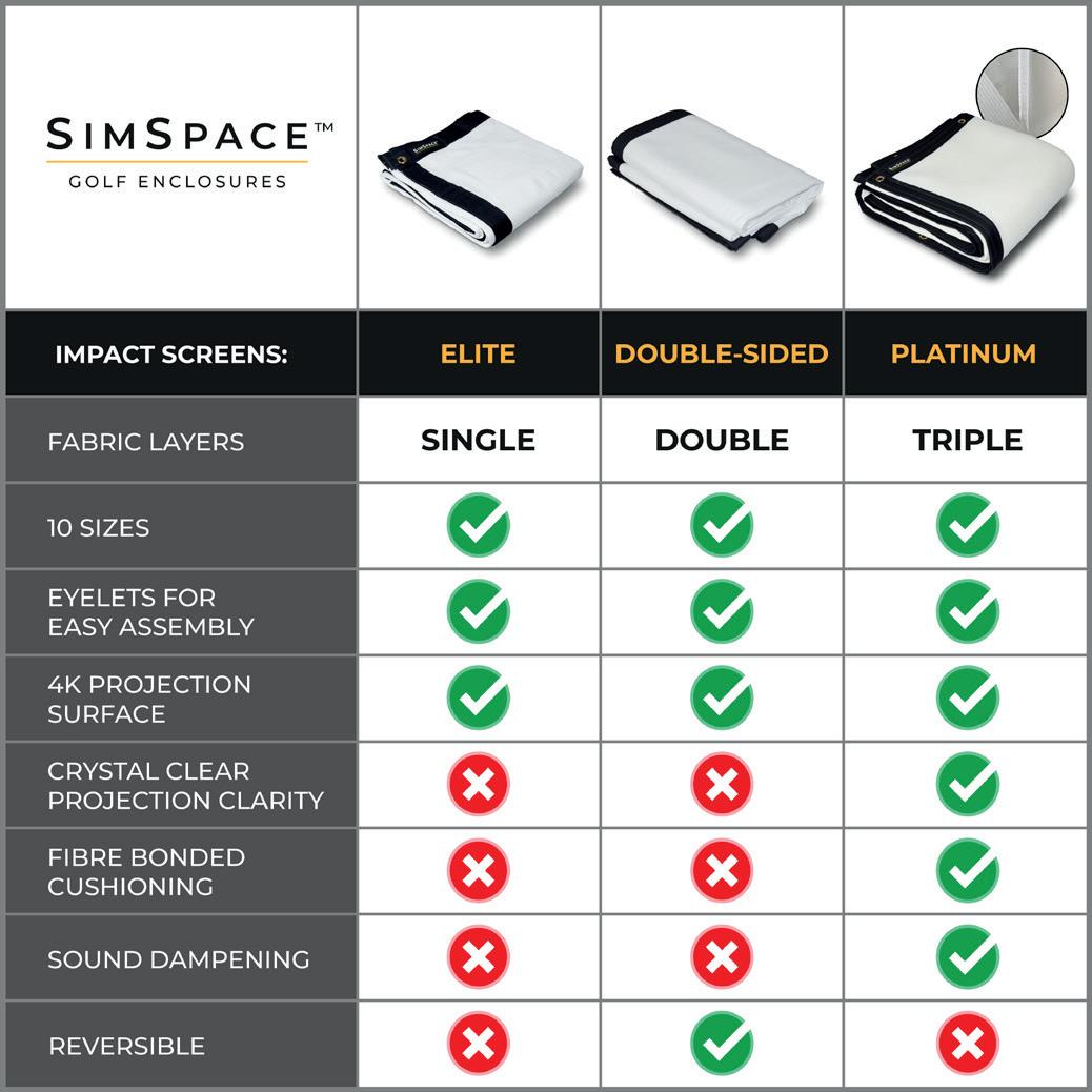 Perfect for home golfers the SimSpace Elite Impact Screen, is designed specifically for light home use. Crafted from a tightknit polyester blend, it ensures excellent 4K image quality and durability. Ideal for those starting their indoor golf journey.