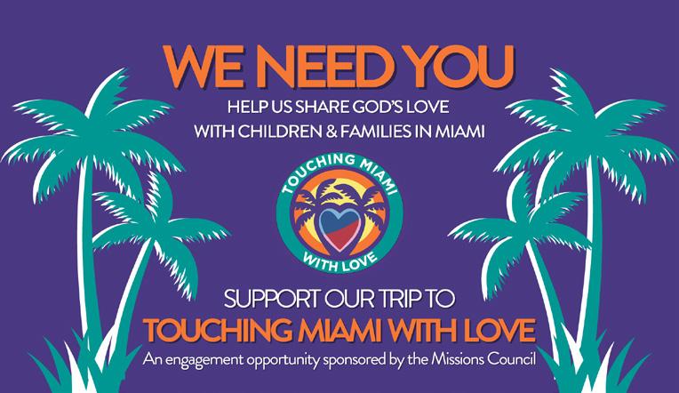 • TML: Touching Miami with Love, or TML, guides children and youth spiritually, intellectually and emotionally through special programming for underserved communities in Miami-Dade County, Florida. Part of our work as their mission partner includes a yearly trip to TML to lead a week of summer camp.