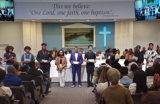 Teens in Progress (TIP) member Makeo Green led both the Scripture reading and prayer, followed by Neveah Jones with a warm welcome. The nursery children then recited "I Am" Scriptures and sang a song that fit well with the program theme.