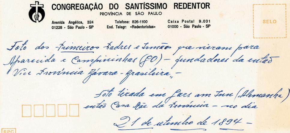 Envelope que trouxe a foto dos pioneiros Redentoristas ao Brasil