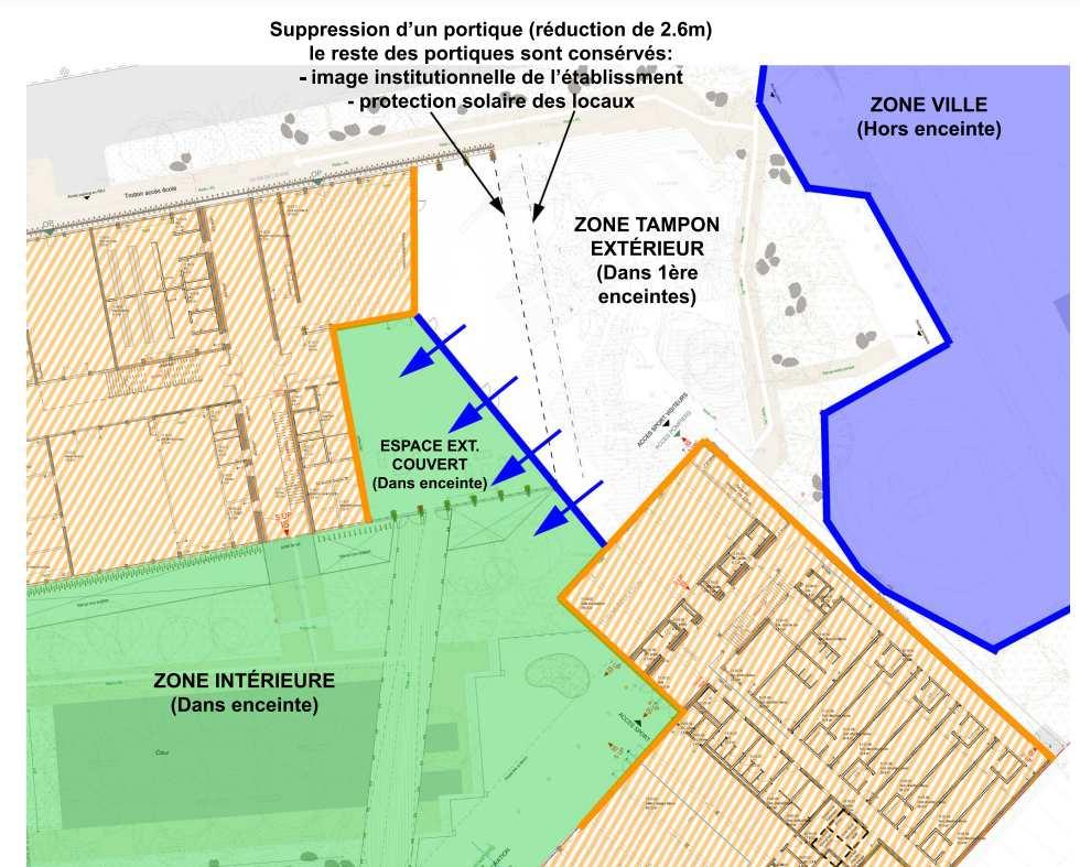 Ce gisement constitue actuellement les coursives et les sur-toitures des modulaires, ainsi que les préaux.