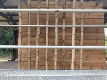 Nous le savons, la durée de vie du bambou mahorais (Bambusa Vulgaris), dans les conditions d’exposition prévues en façade du lycée (classe d’emploi 3.2), doit être assurée. Après avoir comparé différentes études portant sur la même espèce et considéré le risque d’exposition des bambous aux attaques fongiques et animales, il a été préconisé de recourir à un traitement autoclave.