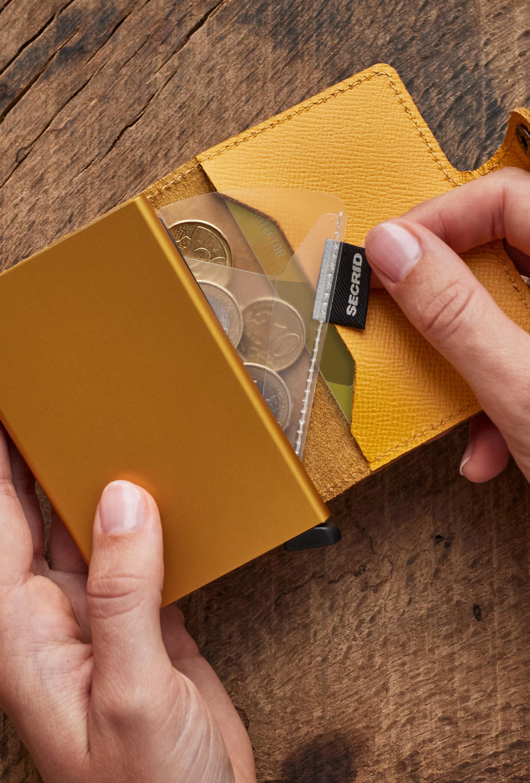 Secrid si riserva il diritto di apportare modifiche in qualsiasi momento per migliorare il funzionamento o la qualità dei suoi prodotti. I campioni dei colori e dei materiali hanno un valore indicativo.