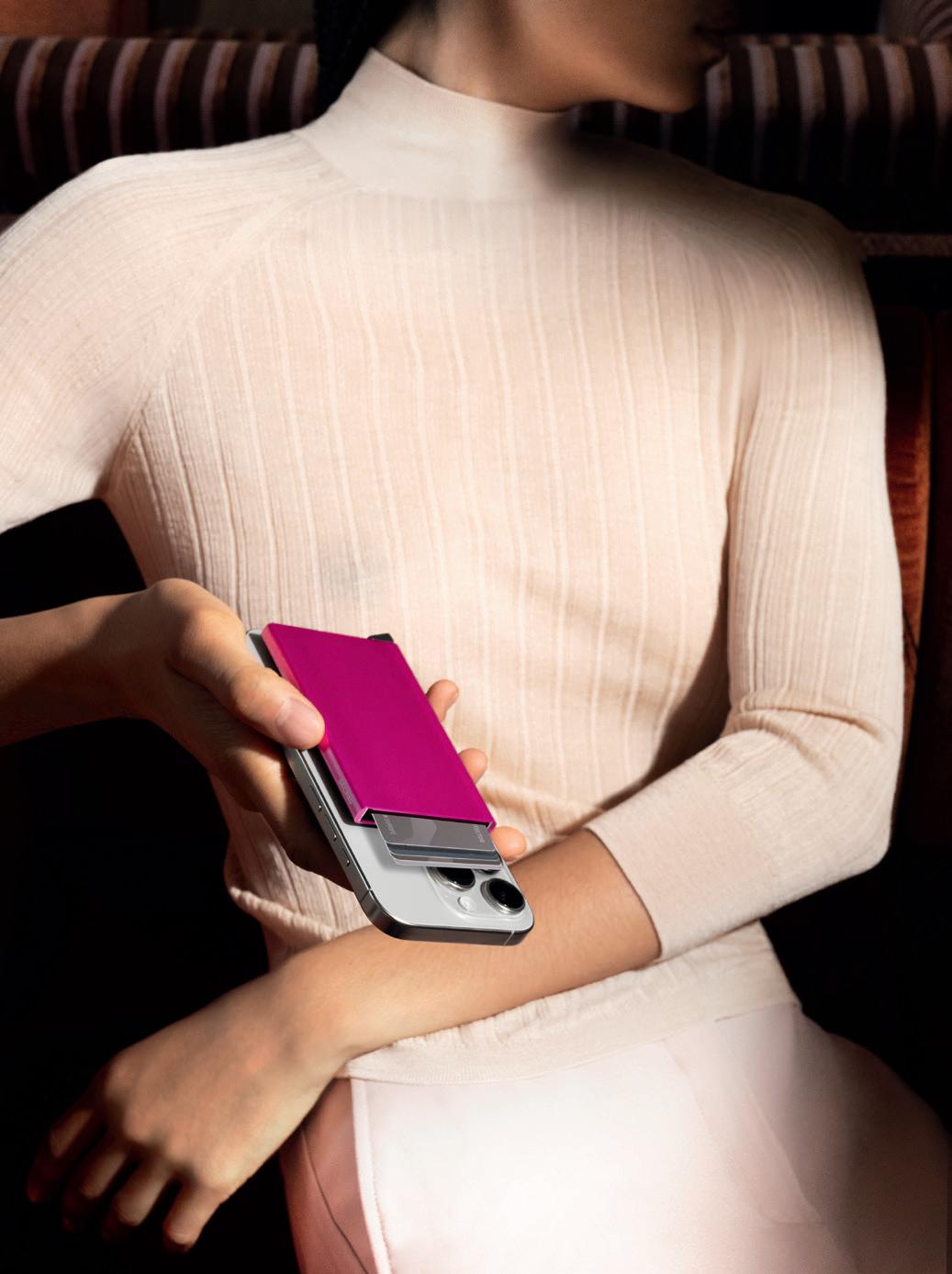 Un potente magnete fissa il tuo Cardprotector+ al telefono.
