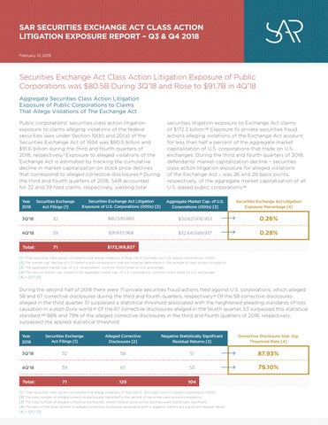Securities Analytics Research (SAR): SAR LLC is a specialized data analytics company focused on securities litigation risk management analytics of U.S. public companies, founded in 2018 and based in Bethesda, MD. Through the SAR Platform®, users license verifiably independent and high-quality data analytics based on near real-time stock price performance in response to public companies’ corporate disclosures. SAR is the developer and publisher of the SAR Risk Score®, which is assigned to issuers that trade on the NYSE or NASDAQ at the close of trading. SAR applies the court-approved event study methodology to test stock price reaction on the universe of corporate disclosures to accurately estimate the probability and magnitude of securities litigation risk impacting directors and officers. SAR provides verifiably independent securities class action settlement valuations as evidentiary support in mediated negotiations that resolve securities claims that allege violations of the federal securities laws under the Exchange Act of 1934 and Securities Act of 1933. The company is committed to the verifiable independence and accuracy of the licensed data and has been publishing quarterly statistical back-testing results since 2018. SAR does not rely on artificial intelligence (AI) or machine learning (ML) and operates in accordance with documented standard operating procedures with assigned process owners to ensure independent, human accountability. The company does not engage in economic consulting, nor places capital at risk on behalf of investors or insurers. SAR does not actively trade, hold, or intend to hold positions on the universe of equity issuances listed on the NYSE or NASDAQ, and whose principals and full-time professionals are restricted from actively trading.