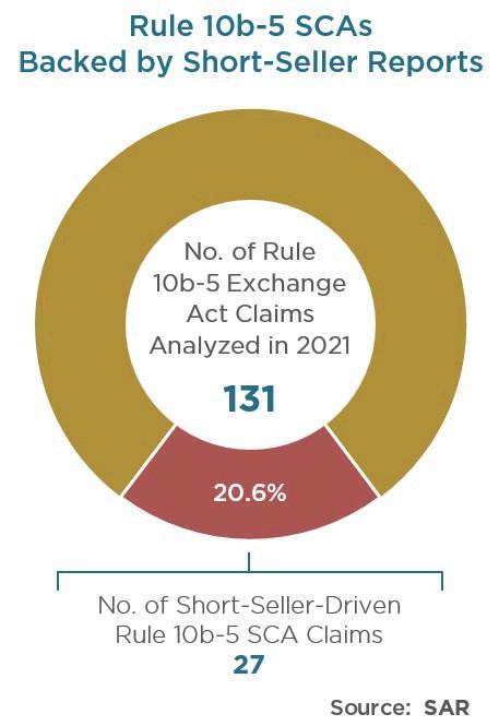 In 2021, directors and officers were exposed to potential liability on about 21% of private securities fraud suits that allege fraud on the market based on research funded by activist short-sellers and their backers who aim to drive down the stock price of the target companies.