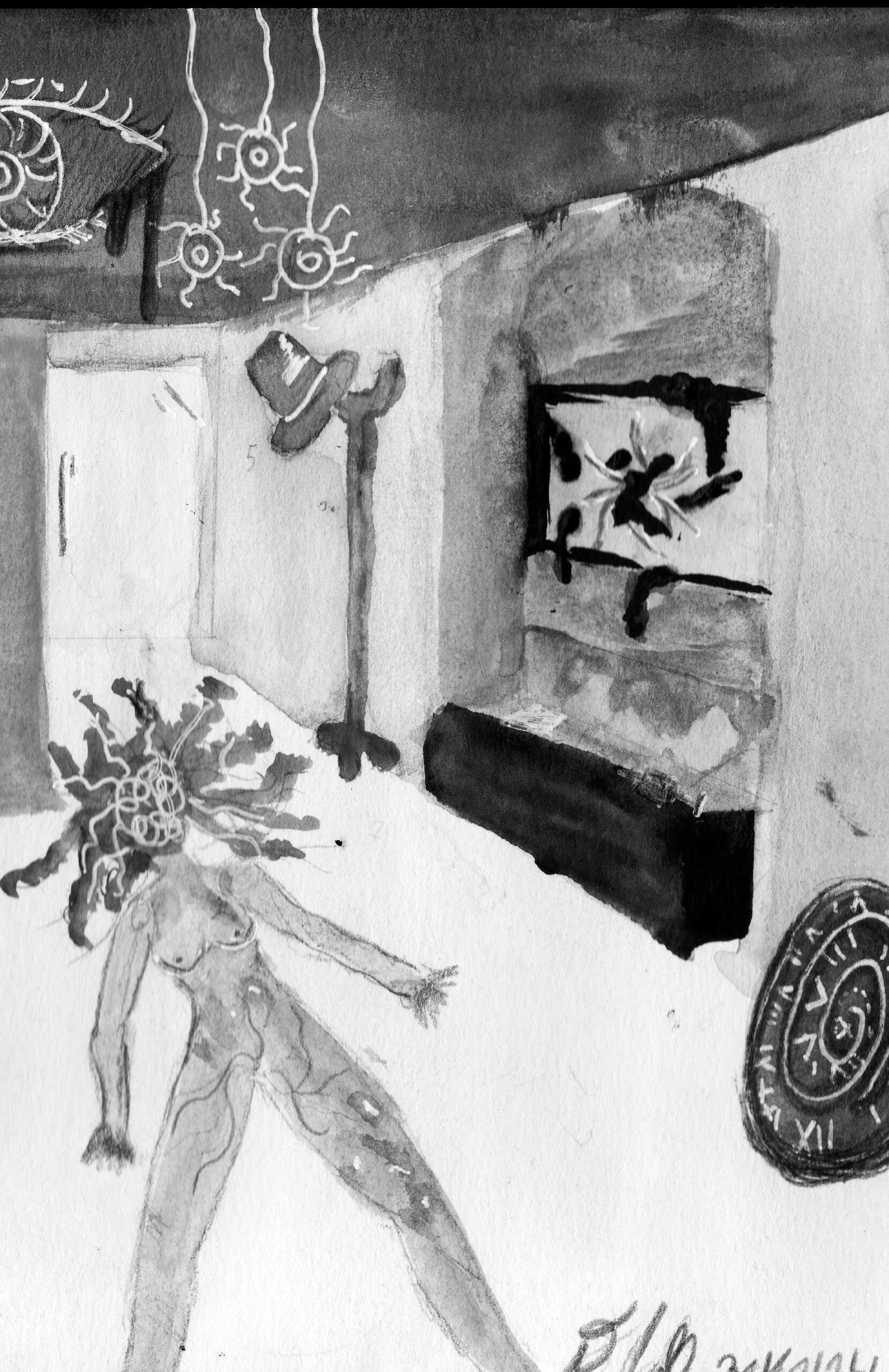 Despierto y abro los ojos. Con uno miro al techo y con los otros dos hacia la ventana. Me estiro y llevo uno de mis pies en dirección a la cabeza, aquí palpo los distintos tamaños de las narices que crecen lentamente, como el pelo en mi cuello. Con el otro pie recorro mi piel, lo arrastro por mis muslos y llego a la entrepierna, donde los dientes de mi boca me muerden desesperadamente. Están pidiendo que los alimente, pero ahora necesito depilarme.