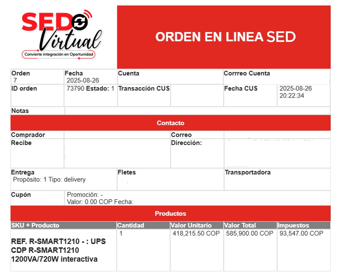 4. SED despacha al Canal a la dirección principal registrada en nuestro sistema. Por el momento no contamos con el servicio de Dropshipping estamos en evaluación para ofrecerlo en Bogotá